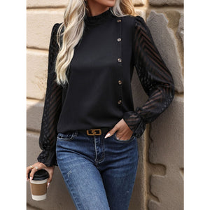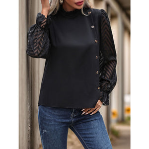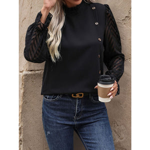 Mock Neck Flounce Sleeve Blouse