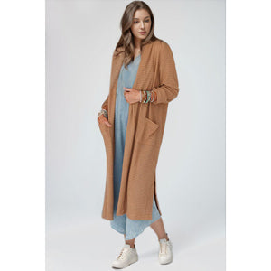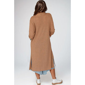 Open Front Long Sleeve Longline Slit Cardigan