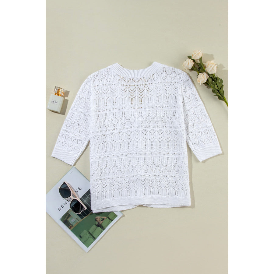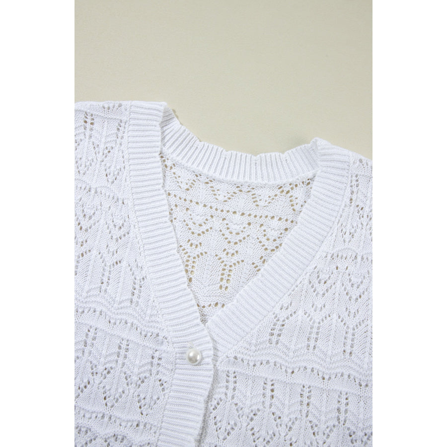 Openwork V-Neck Half Sleeve Cardigan