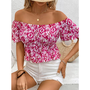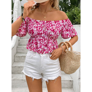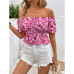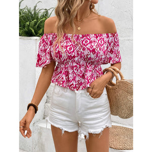 Peplum Printed Off-Shoulder Short Sleeve Blouse