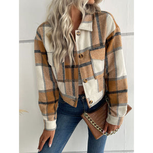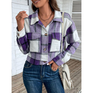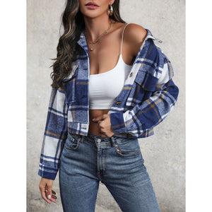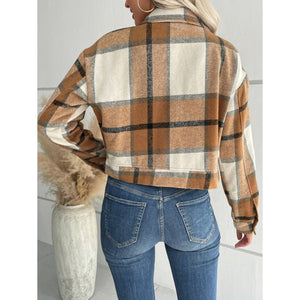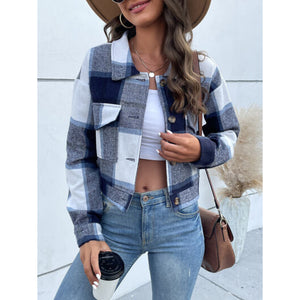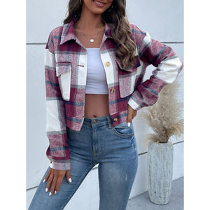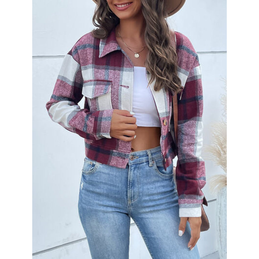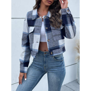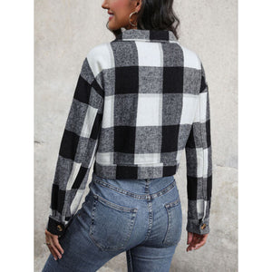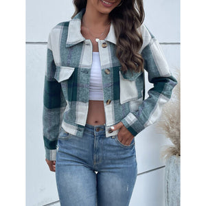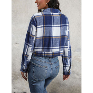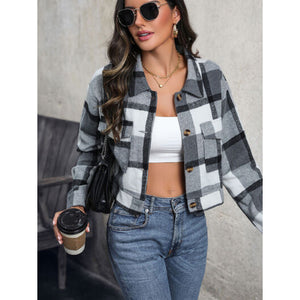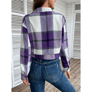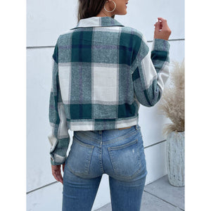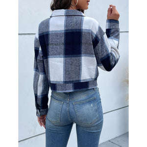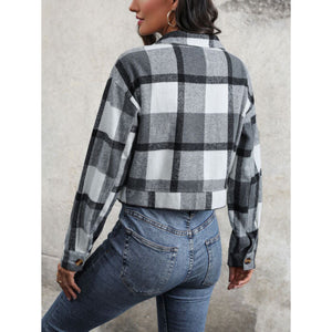 Plaid Button Up Drop Shoulder Cropped Jacket