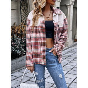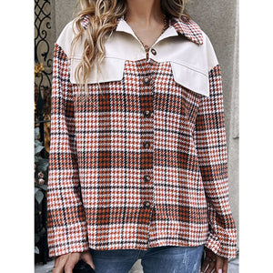 Plaid Collared Neck Drop Shoulder Jacket