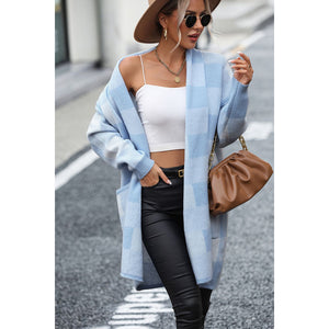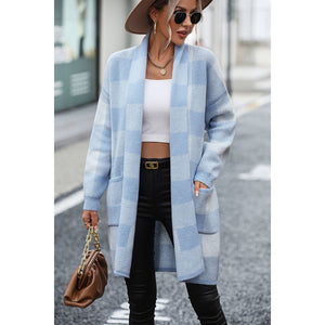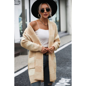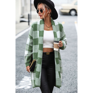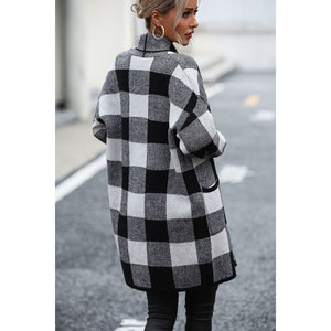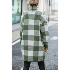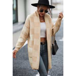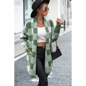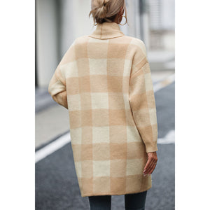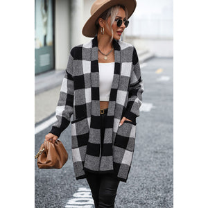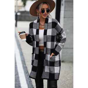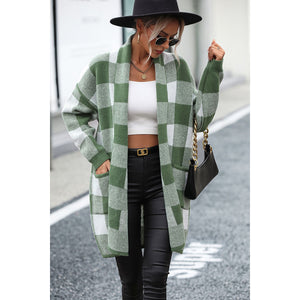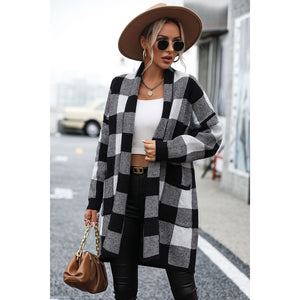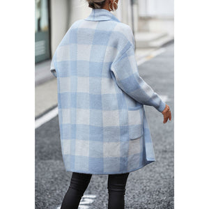 Plaid Dropped Shoulder Cardigan with Pocket