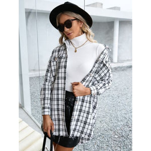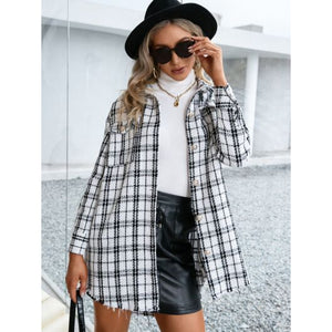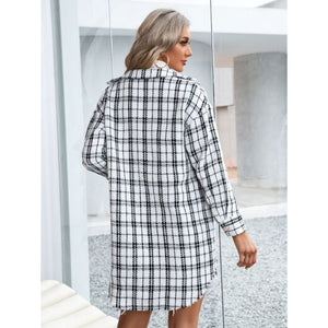 Plaid Pocketed Button Up Dropped Shoulder Jacket