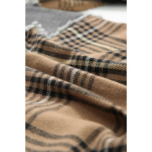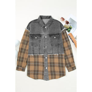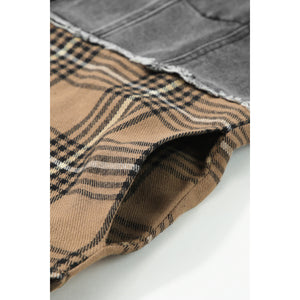 Plaid Raw Hem Button Up Denim Jacket