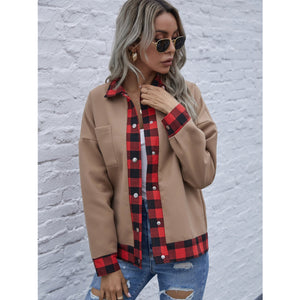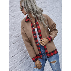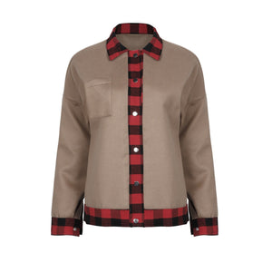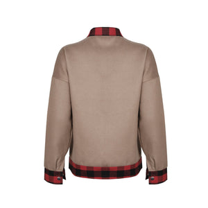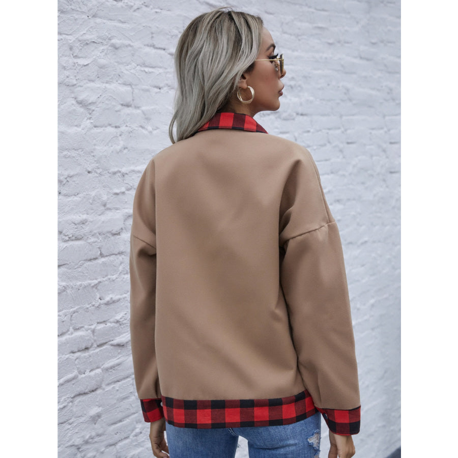 Plaid Trim Long Sleeve Jacket