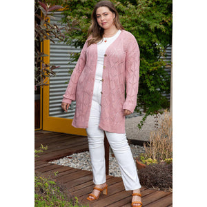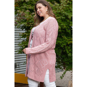 Plus Size Openwork V-Neck Long Sleeve Buttoned Cardigan