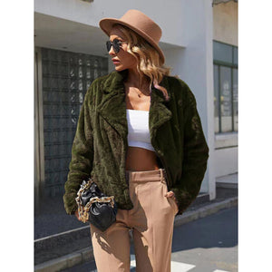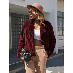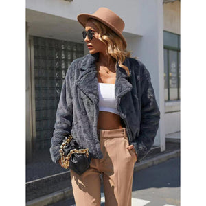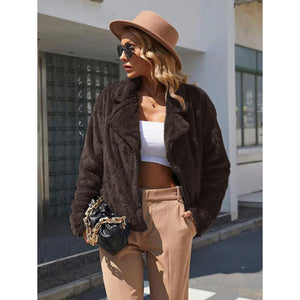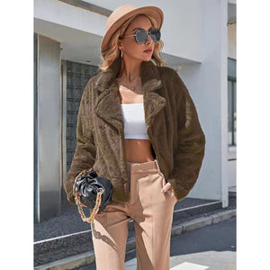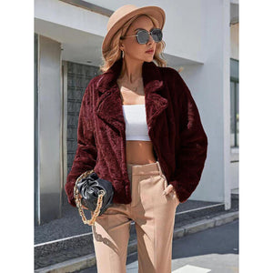 Plush Open Front Dropped Shoulder Jacket