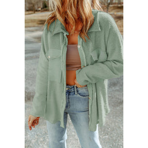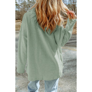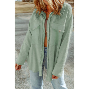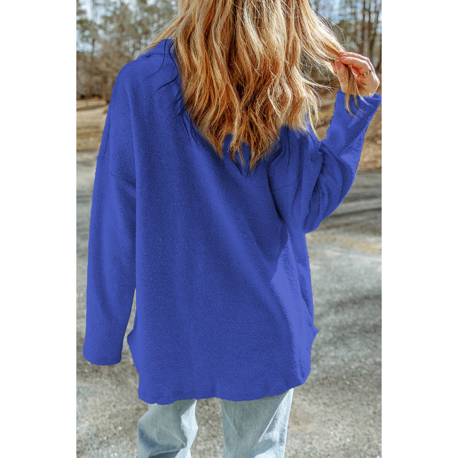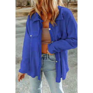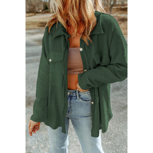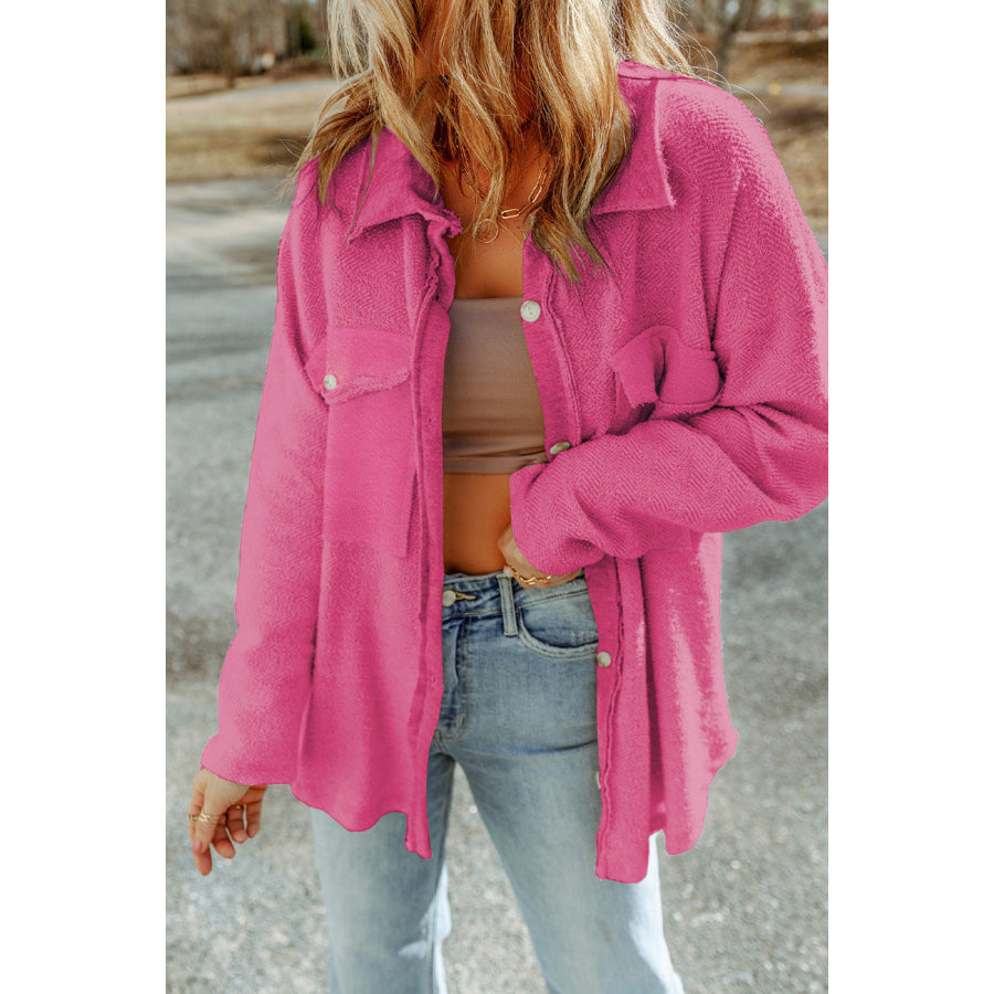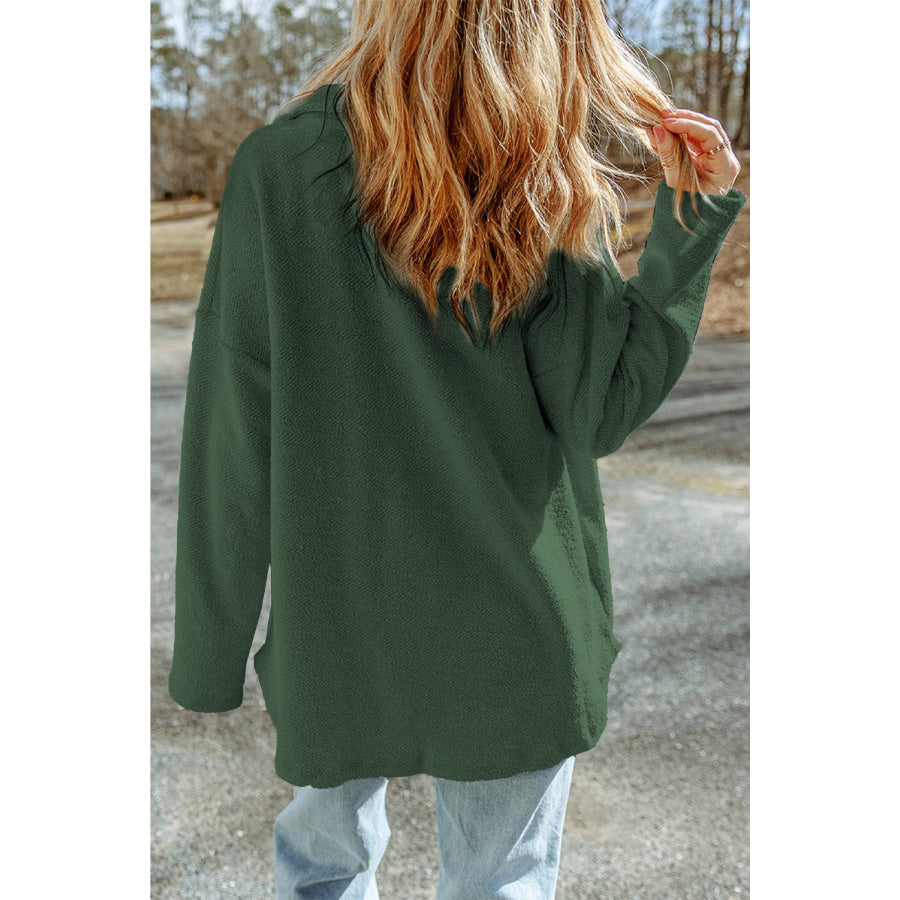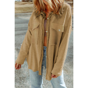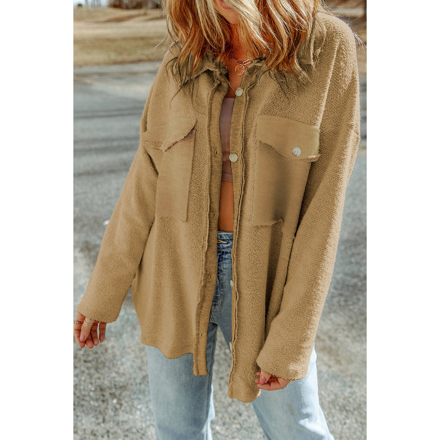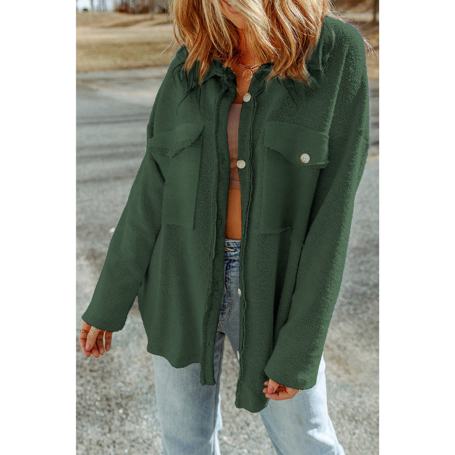 Pocketed Button Up Droppped Shoulder Jacket