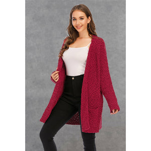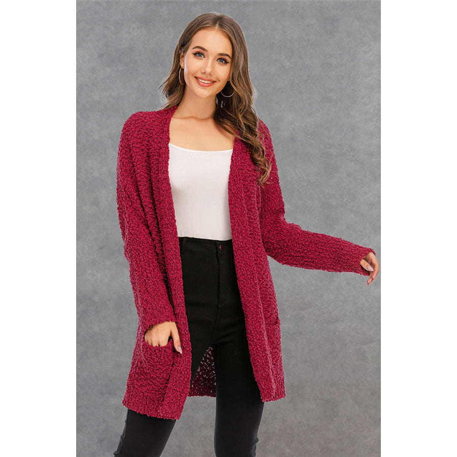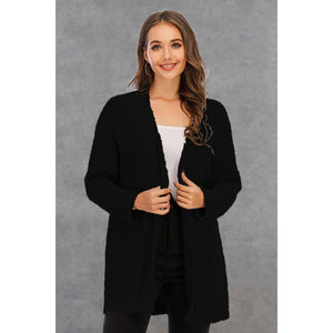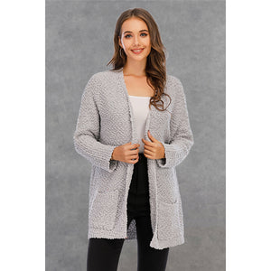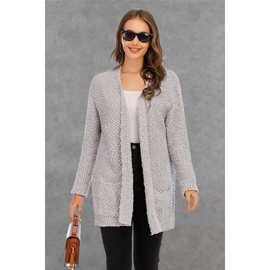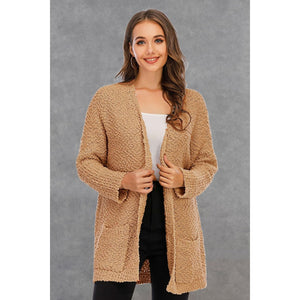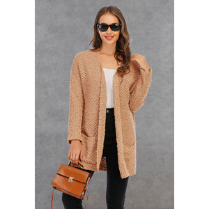 Pocketed Open Front Long Sleeve Cardigan
