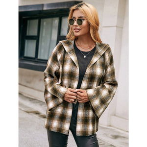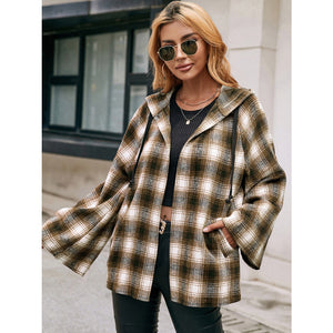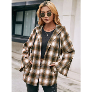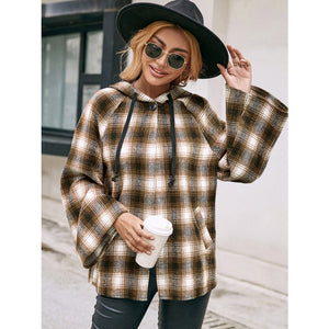 Pocketed Plaid Long Sleeve Hooded Jacket
