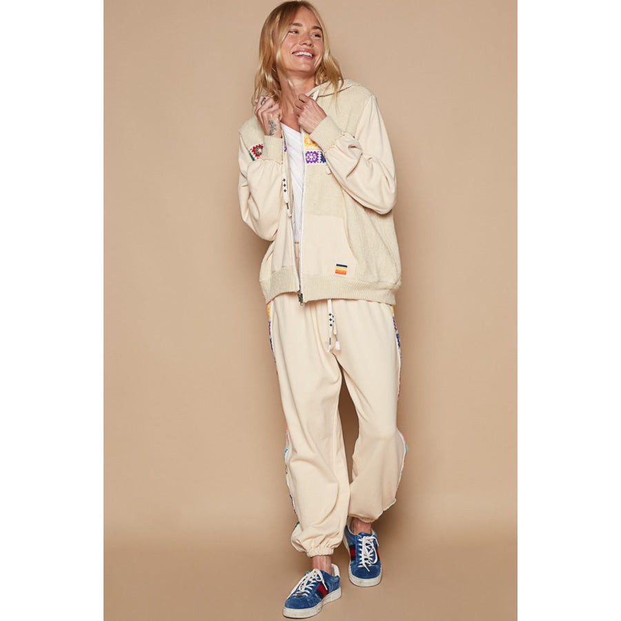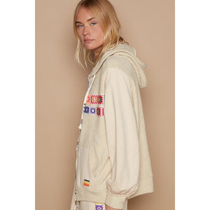 POL Contrast Square Patch Pattern Hooded Zipper Jacket