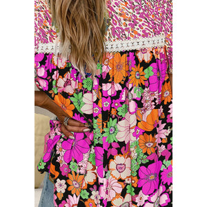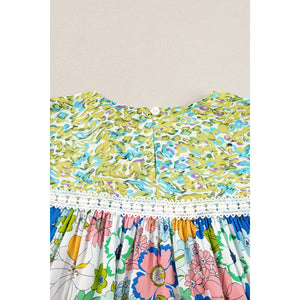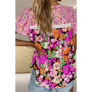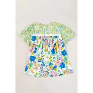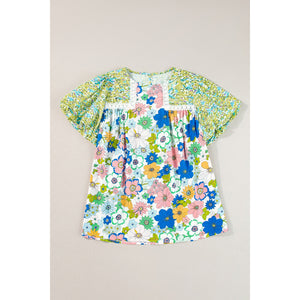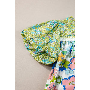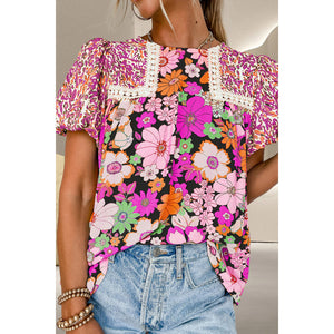 Printed Round Neck Puff Sleeve Blouse