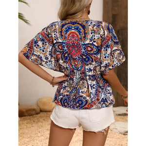 Printed Surplice Half Sleeve Blouse