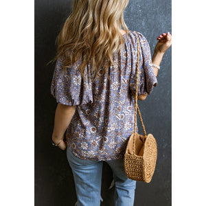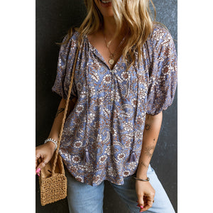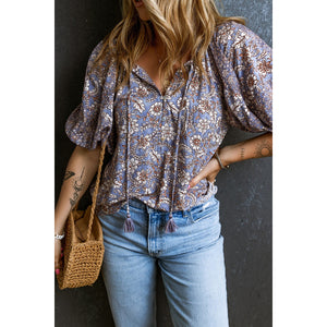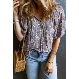 Printed Tie Neck Half Sleeve Blouse