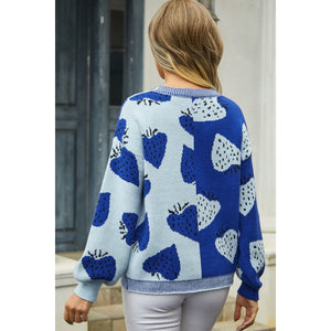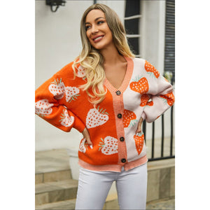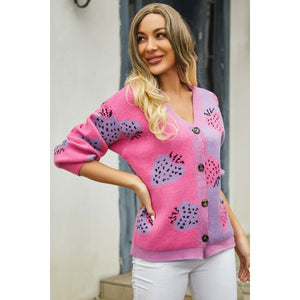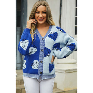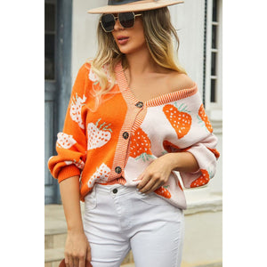 Printed V-Neck Button-Down Long Sleeve Cardigan