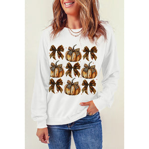 Pumpkin & Bow Graphic Long Sleeve Sweatshirt