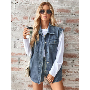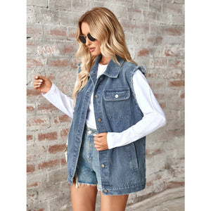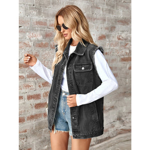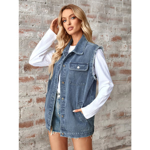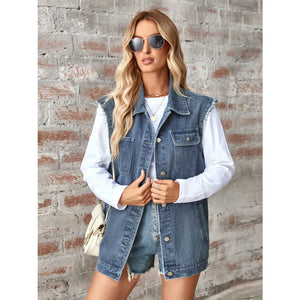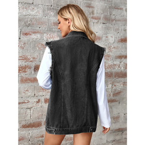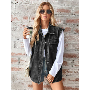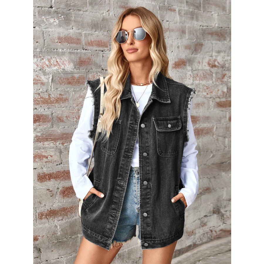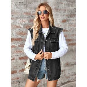 Raw Hem Sleeveless Button Up Denim Jacket