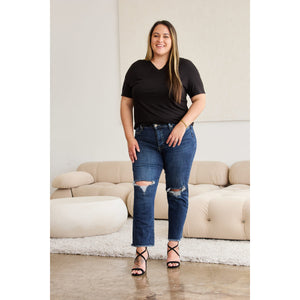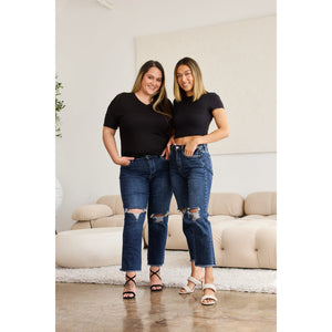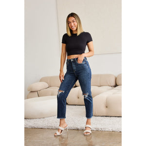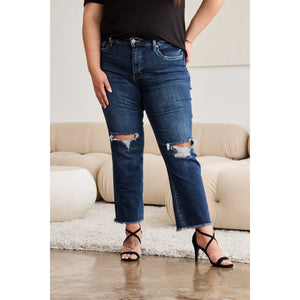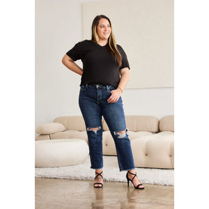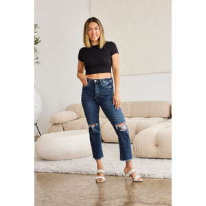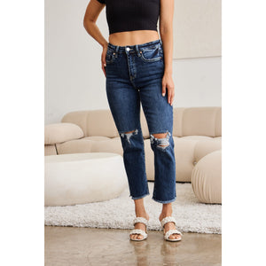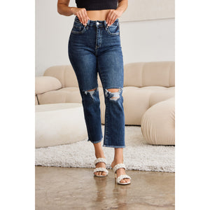 RFM Crop Dylan Full Size Tummy Control Distressed High Waist Raw Hem Jeans