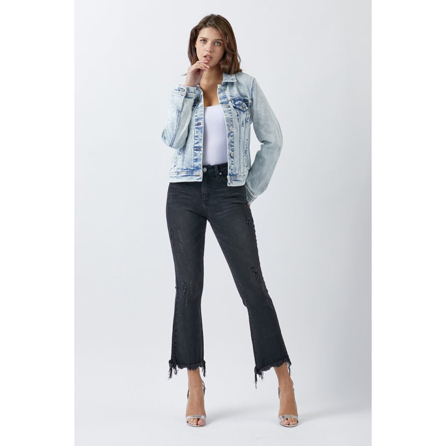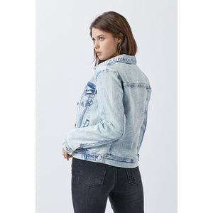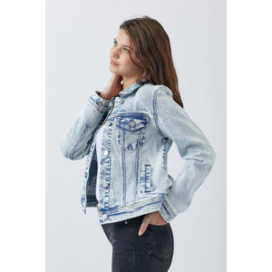 A button-up washed denim jacket is a versatile and timeless wardrobe staple. Featuring a classic button-up front and washed denim fabric, it offers a relaxed and casual look. This jacket can be styled in various ways, from pairing it with jeans for a classic denim-on-denim outfit to layering it over a dress for a chic contrast. With buttoned chest pockets for added detail, it adds a touch of practicality and style. The washed denim jacket is a stylish and effortless piece that can be dressed up or down for different occasions. It's a must-have item that adds a cool and laid-back vibe to any outfit.