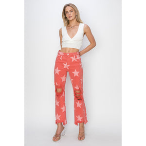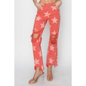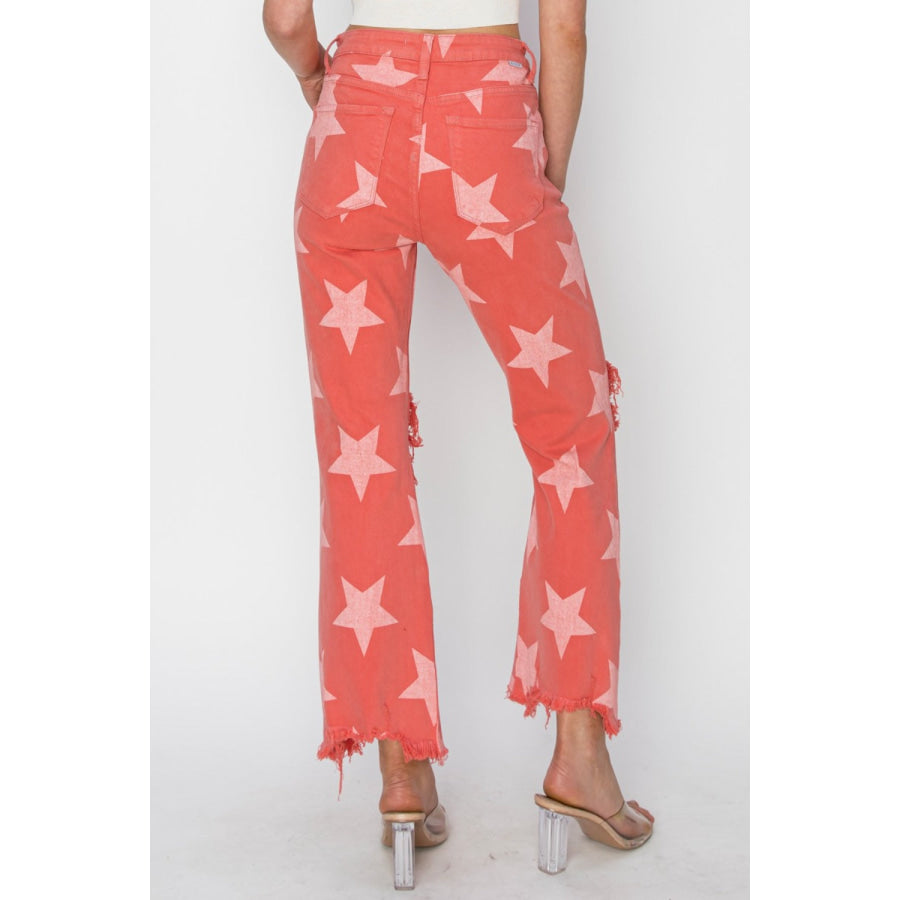 RISEN Full Size Distressed Raw Hem Star Pattern Jeans