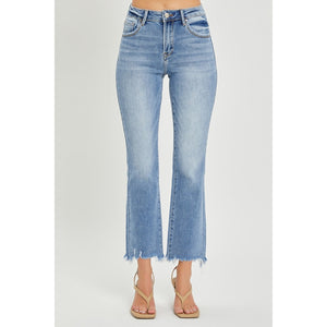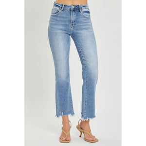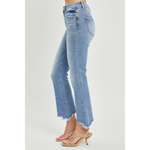 RISEN Full Size Frayed Hem Cropped Straight Jeans