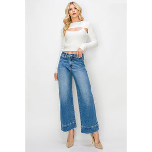 These high rise wide leg jeans are a versatile and stylish addition to your wardrobe. The high rise waist offers a flattering and elongating silhouette. The wide leg cut is chic and on-trend, providing a retro-inspired look. Pair them with a tucked-in blouse or a fitted top for a polished outfit. The wide leg design offers comfort and ease of movement. These jeans are perfect for creating a variety of casual or dressy looks, making them a versatile staple in your closet.