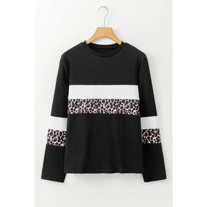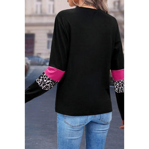 Rose Leopard Colorblock Patchwork Crew Neck Long Sleeve Tee