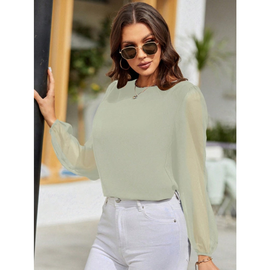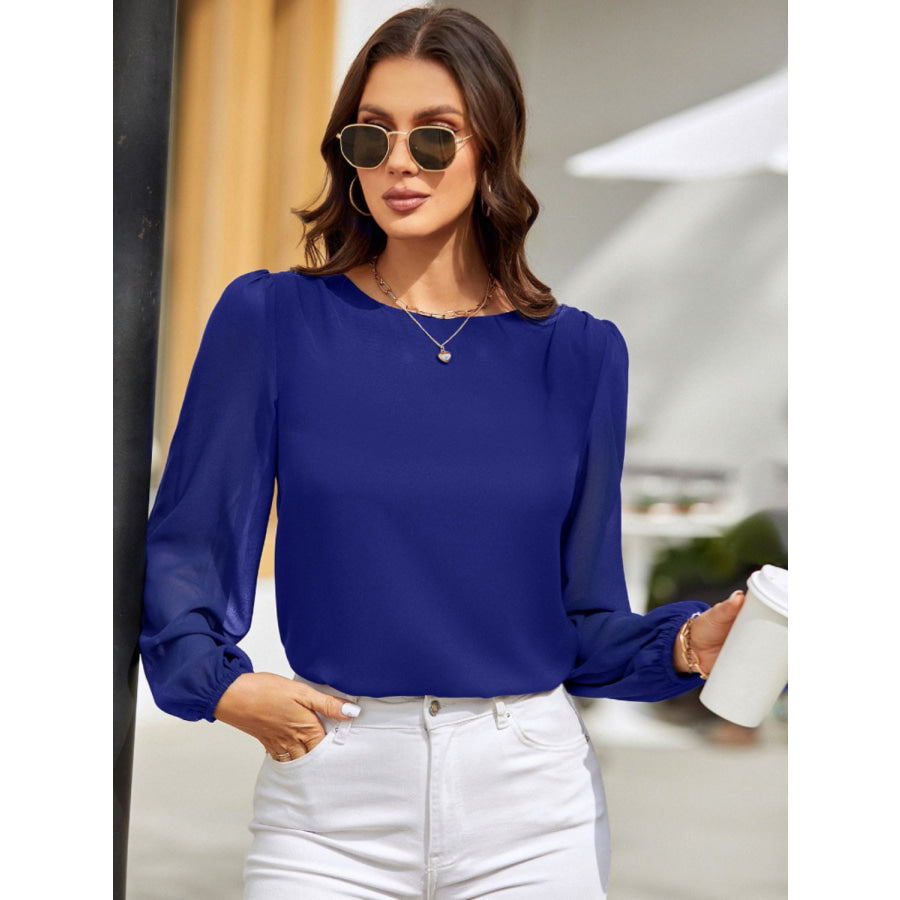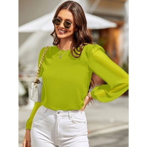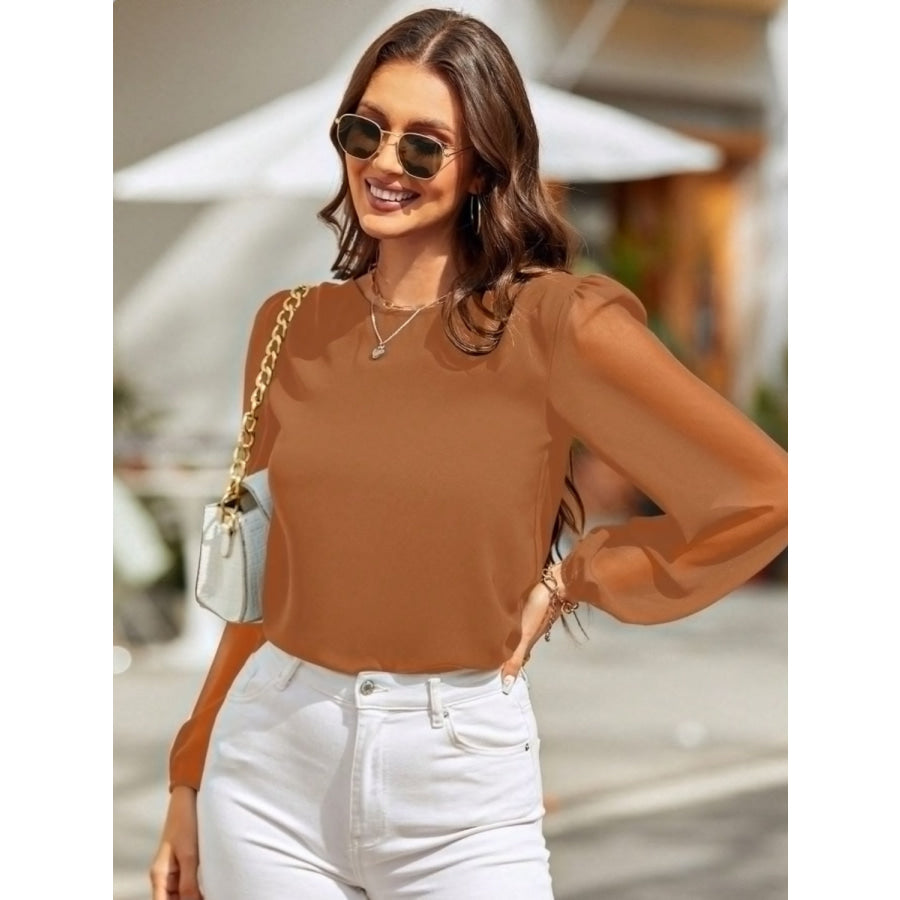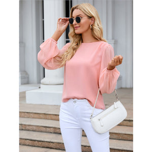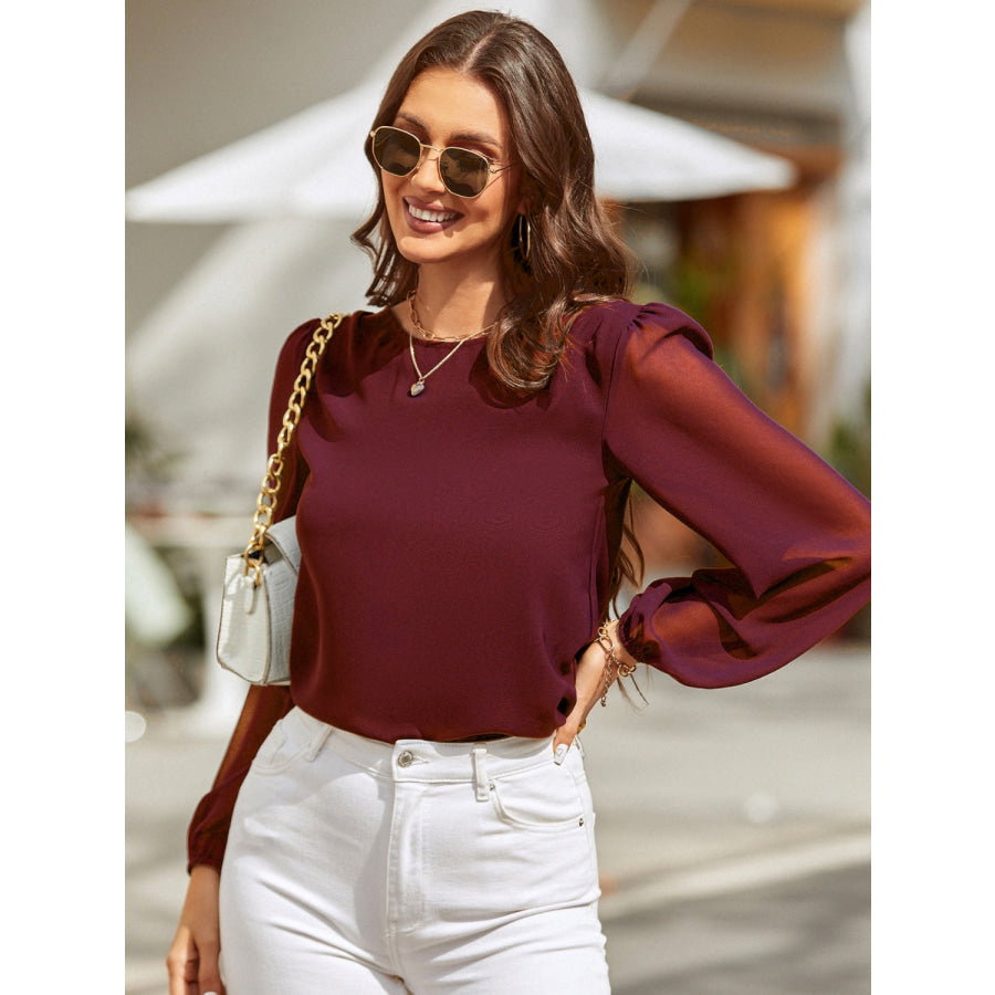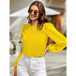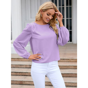 Round Neck Balloon Sleeve Blouse