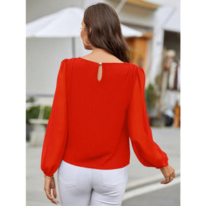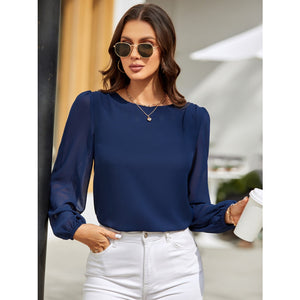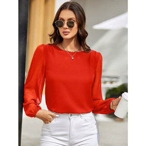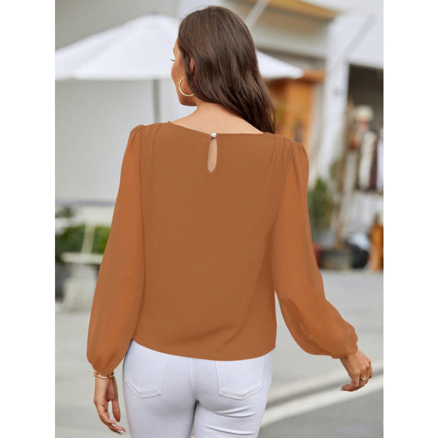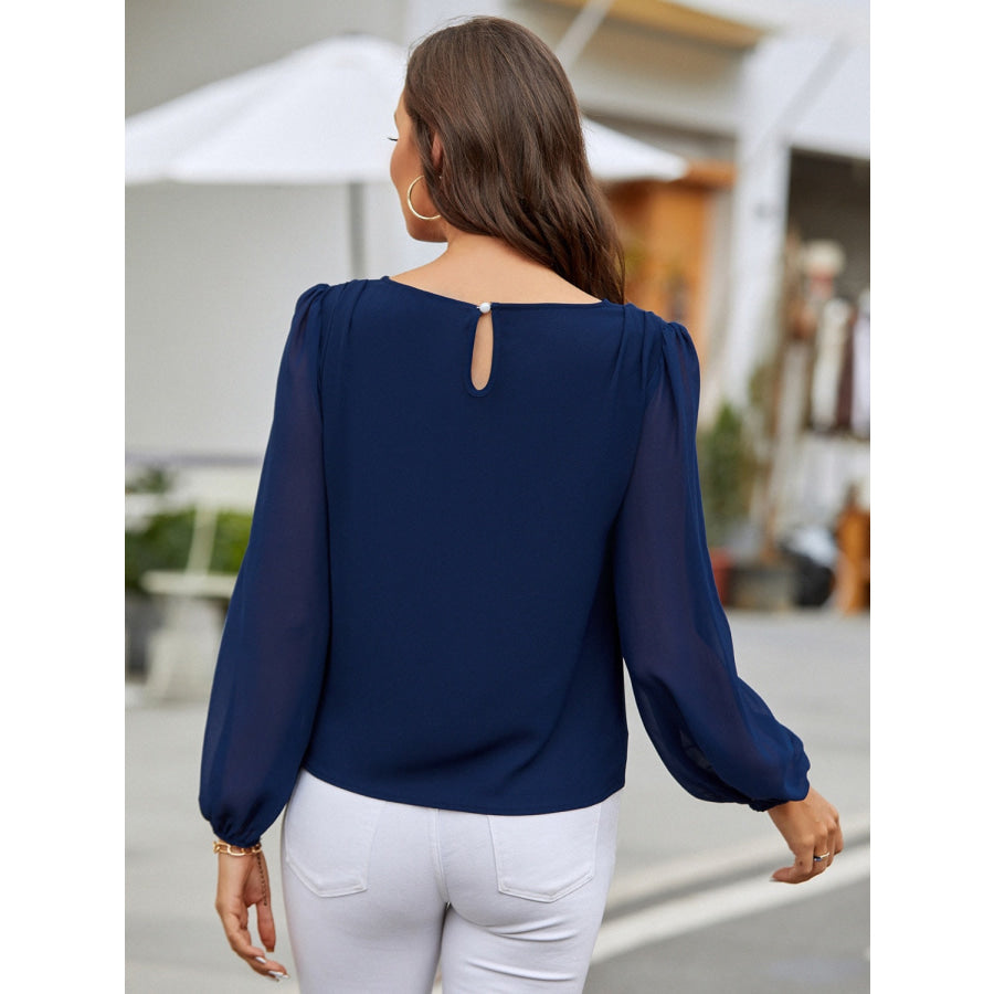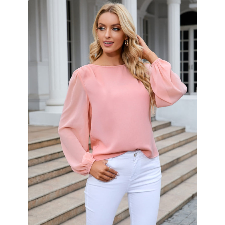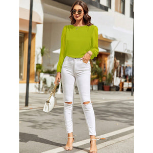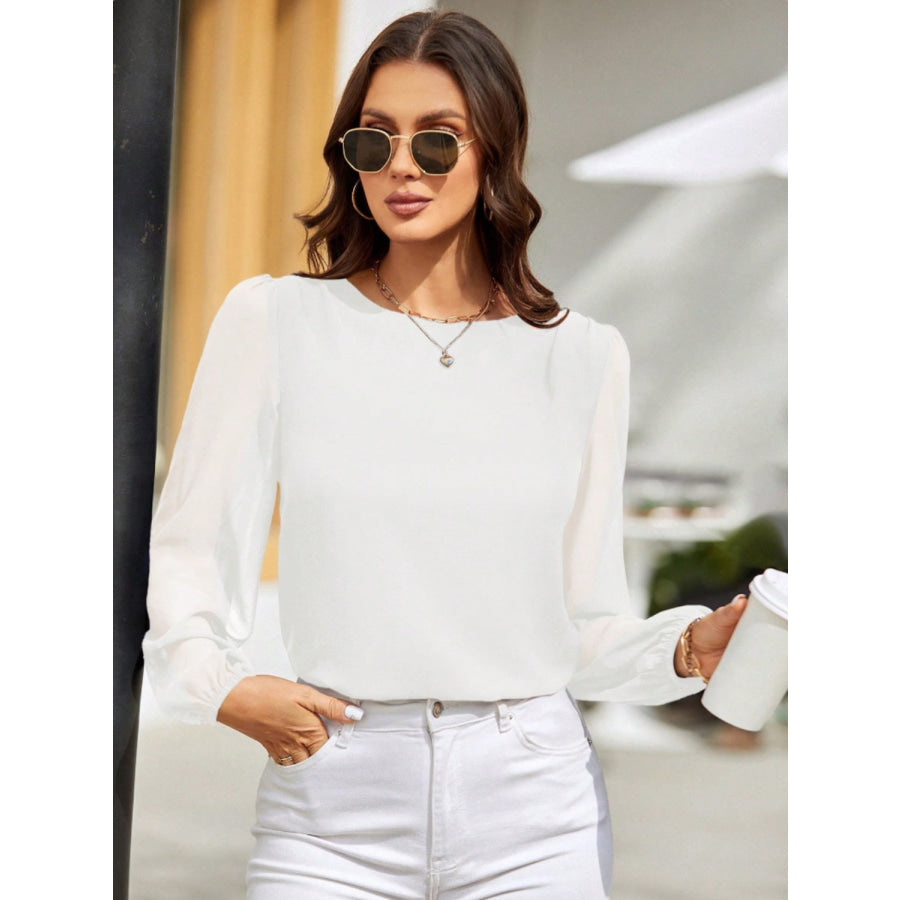 Round Neck Balloon Sleeve Blouse