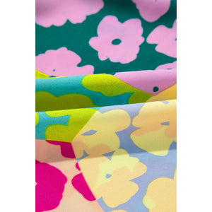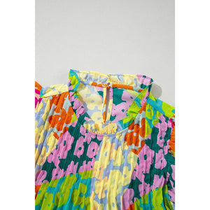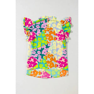 Ruffled Printed Mock Neck Cap Sleeve Blouse