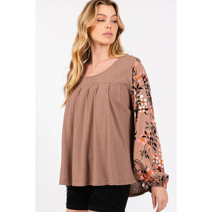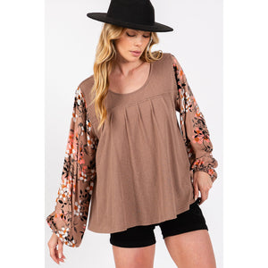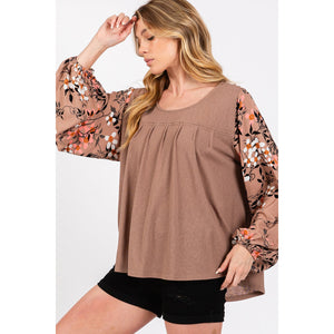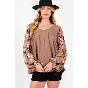 SAGE + FIG Floral Long Sleeve Front Pleated Detail Blouse