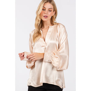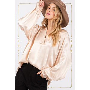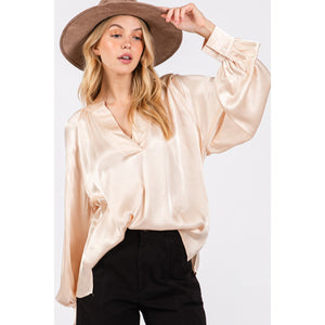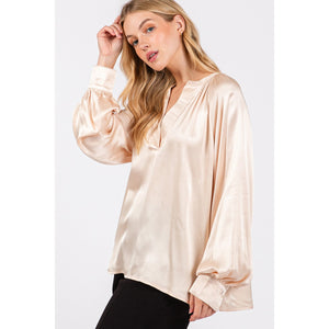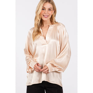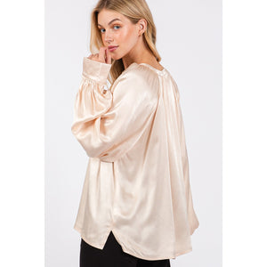 SAGE + FIG Notched Long Sleeve Blouse