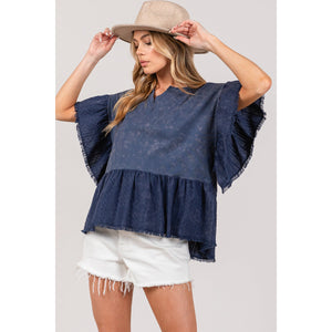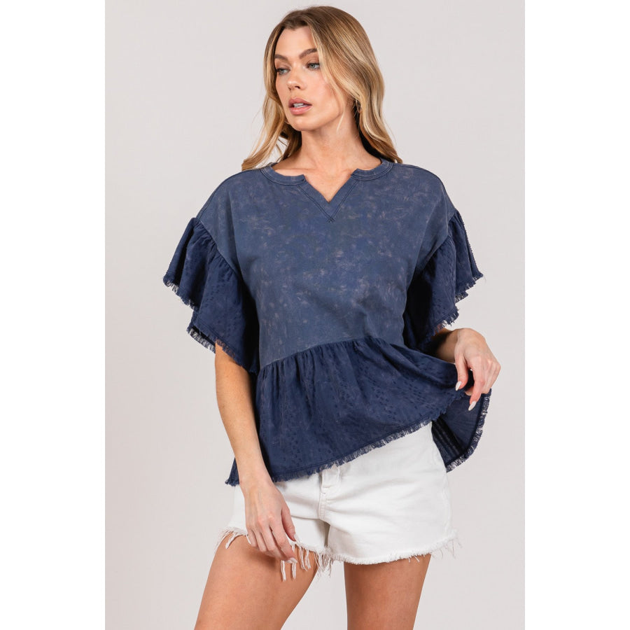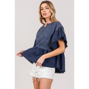 SAGE + FIG Ruffle Sleeve Washed Short Sleeve Blouse
