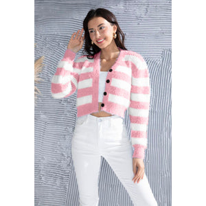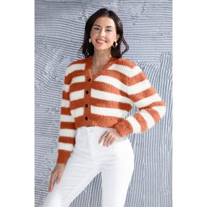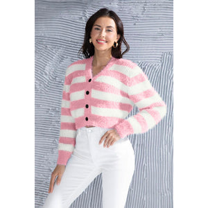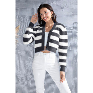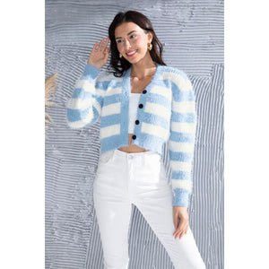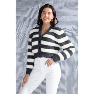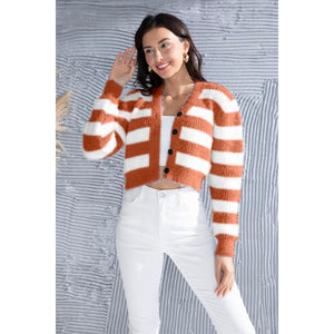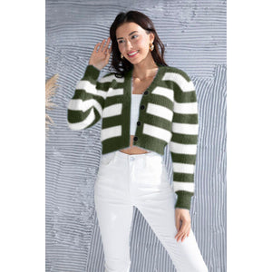Striped Button Up Cropped Cardigan