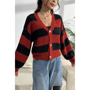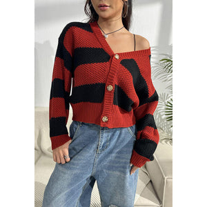 Striped Button Up Dropped Shoulder Cardigan