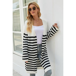 Striped Open Front Longline Cardigan