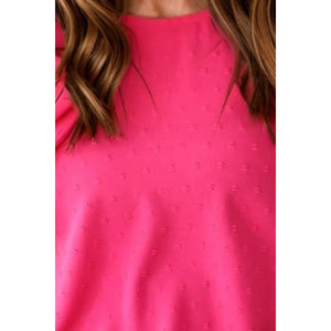 Swiss Dot Round Neck Cap Sleeve Blouse