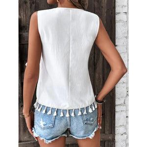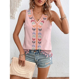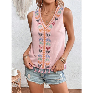 Tassel Printed V-Neck Tank