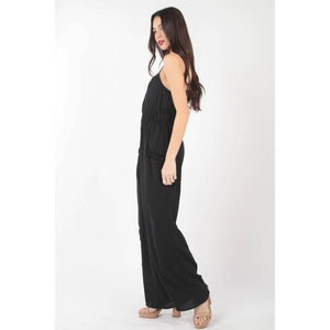 VERY J Pintuck Detail Woven Sleeveless Jumpsuit