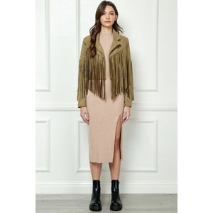 Veveret Suede Fringe Long Sleeve Moto Jacket