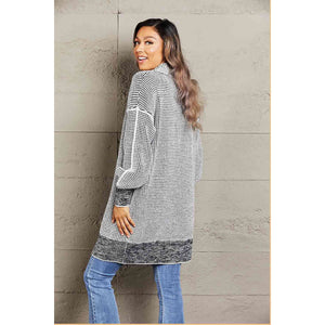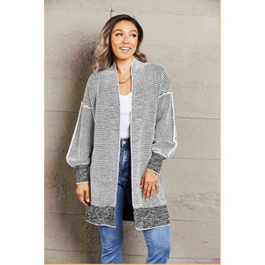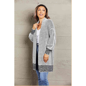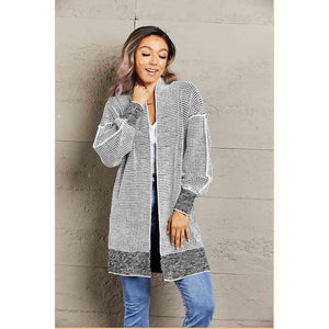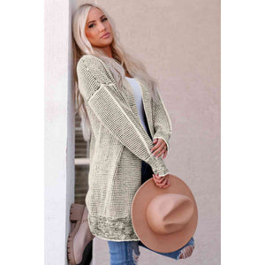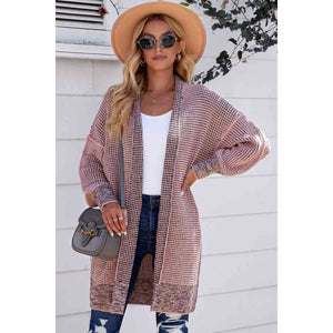 Woven Right Heathered Open Front Longline Cardigan