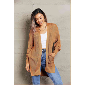 Our rib-knit cardigan is featured an open front, dropped shoulders, and long sleeves. Pair it with our simple dress for the perfect everyday look.
