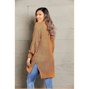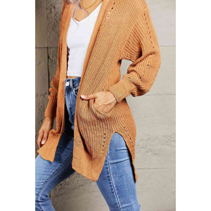 Woven Right Openwork Rib-Knit Slit Cardigan
