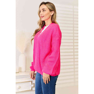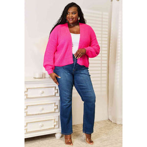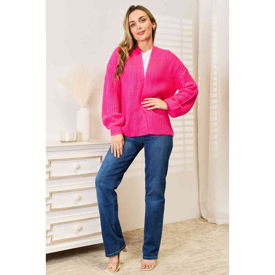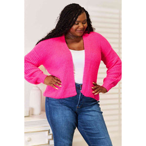 Woven Right Rib-Knit Open Front Drop Shoulder Cardigan