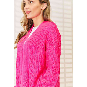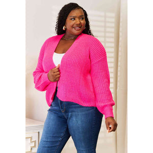 You can elevate your cool-weather style with this rib-knit open-front cardigan. With its relaxed drop-shoulder design, this cardigan is a must-have for effortless layering and cozy vibes.