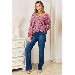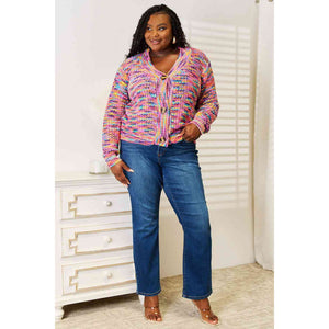 Stay effortlessly chic in this V-neck long-sleeve cardigan. With its versatile design and comfortable fit, this cardigan is the perfect addition to your wardrobe for layering or adding a touch of elegance to any look.
