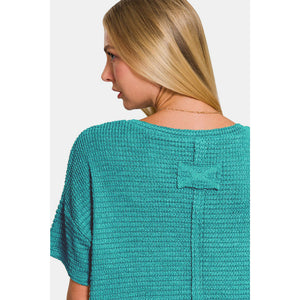 Zenana Drop Shoulder Short Sleeve Jacquard Knit Top