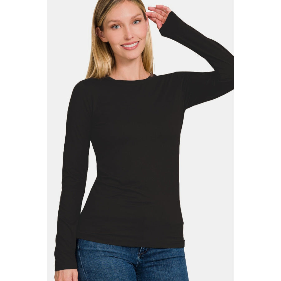 Zenana Ful Size Brushed Microfiber Long Sleeve Round Neck T-Shirt