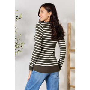 Zenana Full Size Striped Snap Down Cardigan